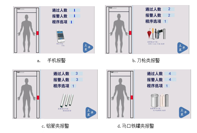 电子产品探测模式:探测门安装在甲方指定通道位置,可实现排除被检测人员身上的机械手表、皮带扣、钥匙串等随身携带的日常金属物品,并告知被检测人员是否携带手机等。