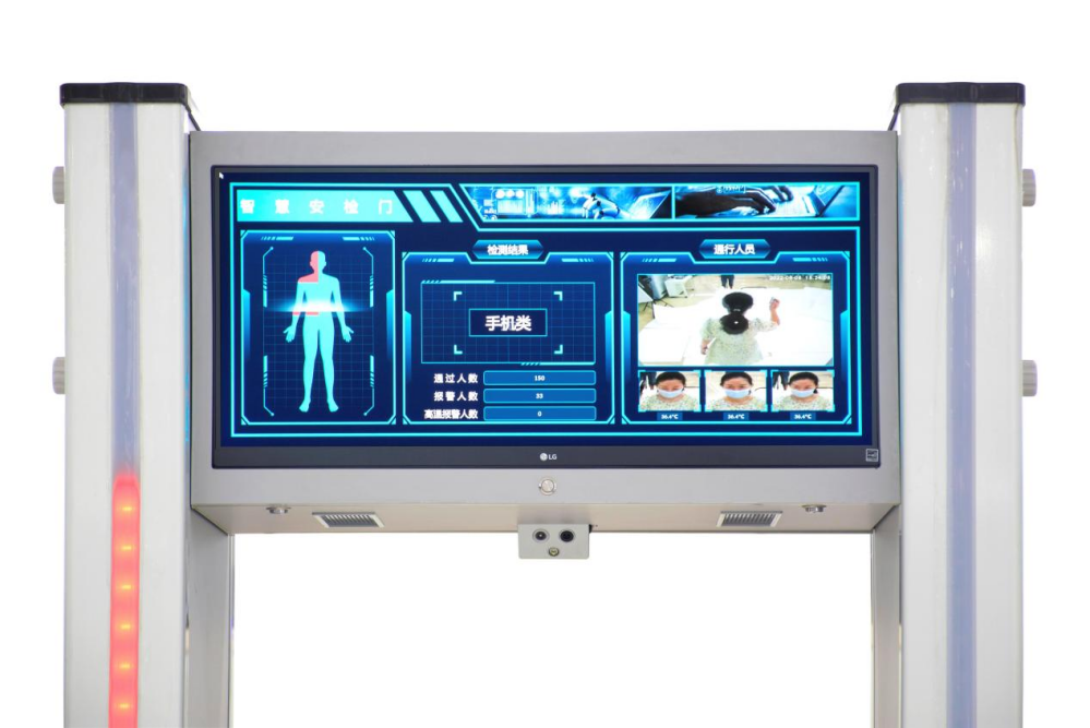 和创智能违禁品探测门是一款利用电磁感应原理及涡流效应,并采用数字信号处理技术。排除被检人员身上口袋里的手机、手表、钥匙、皮带扣等日常随身携带的金属物品的前提下,可探测到被检人员身上的违禁品(指砍刀、斧头、枪支、铝制易拉罐体、铝管、金属背心炸弹、金属腰带炸弹等违禁品)